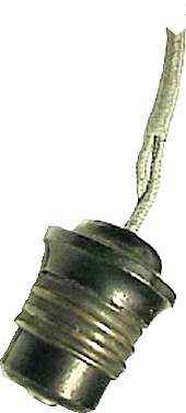 All of the outfits presented in this category use variations of a screw-in connector like the one shown in the figure above on the left. Early homes were wired for ceiling or wall lighting only, and the only way to tap into the electric power circuit was through a light fixture's bulb socket. The wall outlet shown above right was a convenience rarely found, and even with the cover flap was somewhat dangerous-especially for those with children. It was salvaged from a circa 1905 mansion that was being demolished. As discussed in the section of this website entitled A Brief History of Electric Christmas Lighting in America, there is a bit of a controversy as to who actually introduced the first string of lights-- General Electric or the American Ever Ready Company. This collector believes that it was General Electric for several reasons; among the most compelling is the fact that prior to 1906, The American Ever Ready Company Company was called The American Electrical Novelty and Manufacturing Company. Since several pieces of dated General Electric literature refer to Christmas lighting festoons before the 1906 date, it seems logical to assume that they were the first company to actually sell the lighting festoons. To date, this collector knows of no lighting outfits known to exist that bear the American Electrical Novelty company name. Additionally, none of the American Electrical Novelty and Manufacturing Company or later Ever Ready catalogs show Christmas lights until 1912.