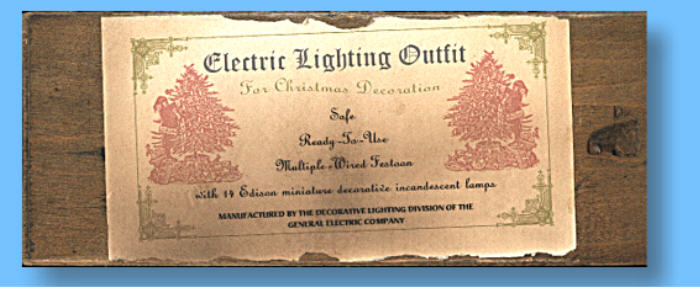 As the idea of electric tree lighting slowly became more accepted by a skeptical public, other companies began offering complete lighting sets as well. General Electric immediately tried to patent their festoon sets, but were unable to as the courts decided that the design and concept was based on ordinary electrical skills and was therefore not patentable. Soon many small companies were offering lighting sets of their own. Please refer to the Manufacturer's Histories section of this site for further details about many of the early manufacturers of electric Christmas lighting.