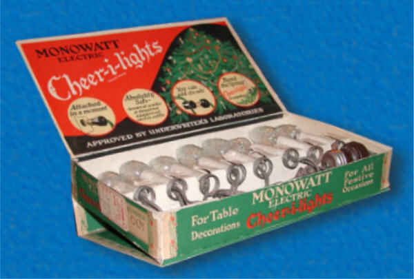 lights upright on the tree. Monowatt made electrical devices,