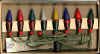 Here's a set of figural lights by Premo. The Premo name was used for Christmas lights for only one year, so it is easy to date this extremely hard to find outfit. Many of the figural lights in the set are original, as they match the box art perfectly, as does the string. My search continues to find all of the proper figural lights to complete this set. I've seen only one other example of this outfit, and it was missing the lid to the box. You can read more about this set HERE.  |