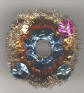 Here is a set of imported German light reflectors, intended for use behind the electric light bulbs to enhance their brightness and sparkle. These were offered by Santalites, the same company who manufactured the light set pictured above. The reflectors are made out of thin copper with various colored coatings applied to the reflective surface. The inner ring is made of pressed cardboard, to electrically insulate the conductive copper reflector from the light socket.  |
