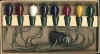 Produced by Rudges circa 1925, this outfit uses machine made pinecone lamps, with no exhaust tip. The color is flashed onto these bulbs, rather than being hand painted.  |