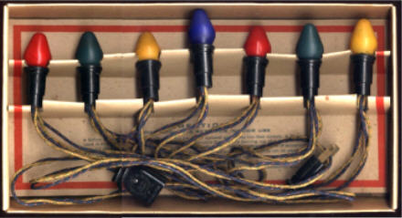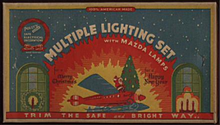 Paramount was the first company to incorporate General Electric's new candle-shaped light bulbs into a boxed set. GE had introduced the lamps a year before, but they did not become popular until they were sold in sets like this one.  |