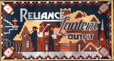 | ca 1938 | Reliance | Here is a later version of the Reliance lantern set. This box is smaller and not as well made, but is intended to be folded to make a countertop display. |   ![]()  |