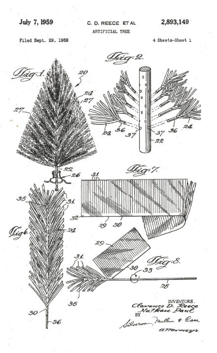 December, 1958: Aluminum Specialty Company toy sales manager Tom Gannon had noticed a small, homemade all metal tree used as a display in a Ben Franklin Five and Dime store in Chicago, Illinois. He thought it was a wonderful idea, and presented it to his company in Manitowoc, Wisconsin right away. At the time, Manitowoc was known as the Aluminum Cookware Capital of the World, and the company president thought that Tom's idea was a splendid one. The design department sprang into action, and by Christmas of 1959, they offered the very first all-aluminum Christmas tree to a somewhat confused public. After a surprisingly busy first year of sales, the idea really took off, and by 1960 The Aluminum Specialty company had perfected their flagship tree: The Evergleam. Although the company records and archives have long since been lost, several estimates put the factory output at four million trees during their 10 year production time from 1959 to 1969. The company never advertised their tree as artificial, but rather insisted that their offering was simply a "Permanent Tree". It had a sliver painted wooden trunk with a multitude of holes drilled in it at increasing angles, so that when each of the hand made branches of the same size was inserted into them, they would perch upwards, forming the traditional tree shape. Equipped with a simple aluminum tripod style stand, the trees were easy to set up and certainly caught one's eye.