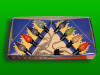 Here is a generic set by the name of Everlite. It came to me in very good condition, except that it did not have the original lamps and there was a scar on the box top from a price tag removal. The insert is in great shape, and ironed out well for reshaping. I had plenty of the proper XL type shunted lamps to go in the box, and touching up the area damaged by the tag removal was made easy with a watercolor pen and a little Aileen's white acid free glue. I keep a huge stock of the pens so as to be able to match artwork colors as closely as possible. After filling in the areas that were damaged, I took a little bit of white glue on a Q-Tip and spread it over the filled in area. This helped to spread out the water soluble ink more evenly for a better color match and in addition, the glue, when dry, also matches the original sheen of the box top. The result is an almost invisible repair.