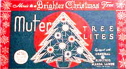 that interconnect, an effort to make even light distribution on the tree a bit easier. Most C-7 outfits have only 7 lamps in a set. Adding to the mystery, a set of Muter brand lights in my collection is identical in almost every way to this ClemCo set, except for the box art. This suggests a possible connection between the ClemCo and Muter companies. More research will have to be done on this!