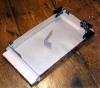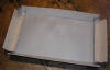 About two hours later, the light string is back home in its box, neatly coiled in the same manner as when the set originally left the factory. This was a difficult job, as the cardboard insert is no match for the stiff, heavy wires, and I really had to coil and shape the string out of the box, making a multitude of adjustments until the string and sockets would drop into the box in perfect alignment with the insert. The lights that came with the outfit were not original, and were a mismatch of lamps from different time periods, as each was replaced over years of use. Since the box called for Mazda lamps, I installed a matching set of outside painted Mazda "snow-tips". Now it's time to attack the lid on the set-the most important part! As mentioned before, the corners are split out, and there is discolored cellophane tape on them all. I do not want to try to remove the tape, as while it can be done, the discoloration from the gum cannot be removed. I do, however, want to repair the corners as invisibly as possible. This can easily be done with the white Aileen's glue and some acid-free cardboard of medium weight. Here is the corner repair in progress. In the center of the lid you can see one of the corner reinforcements that I have fashioned out of the acid free cardboard. These are covered in the Aileen's glue, and then slipped under the folds of cardboard in each corner on the original box. I use the heavy duty paper clamps to hold the corners in place, and when dry, you have a permanent and invisible repair. The corners are now actually stronger than when the box was new. Here's the completed lid. All four corners are now fixed, and the repair is truly invisible. Luckily, this box lid had ample folds of cardboard to hide the repairs-many of the less expensive outfits were made from much lighter material without the reinforcing folds at the corners. The completely restored outfit, ready for high resolution photographs to be taken for presentation here on the website. I use an Olympus Camedia 3040 digital camera, which so far has yielded pleasurable results. I take high resolution photos, then compress them for fast loading on the website using Microsoft's PictureIt! photo manipulation software. By compressing hi-res photos, little detail is lost in the conversion, and the picture will load much faster for web site visitors. Here are the finished photos, ready for uploading to the website in the proper category. ![]()