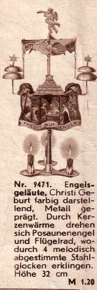 Engelgeläut” model series No. 2. The illustration at right below is reproduced from a 1931 German toy catalogue, courtesy of fellow collector Eva Friedrich.