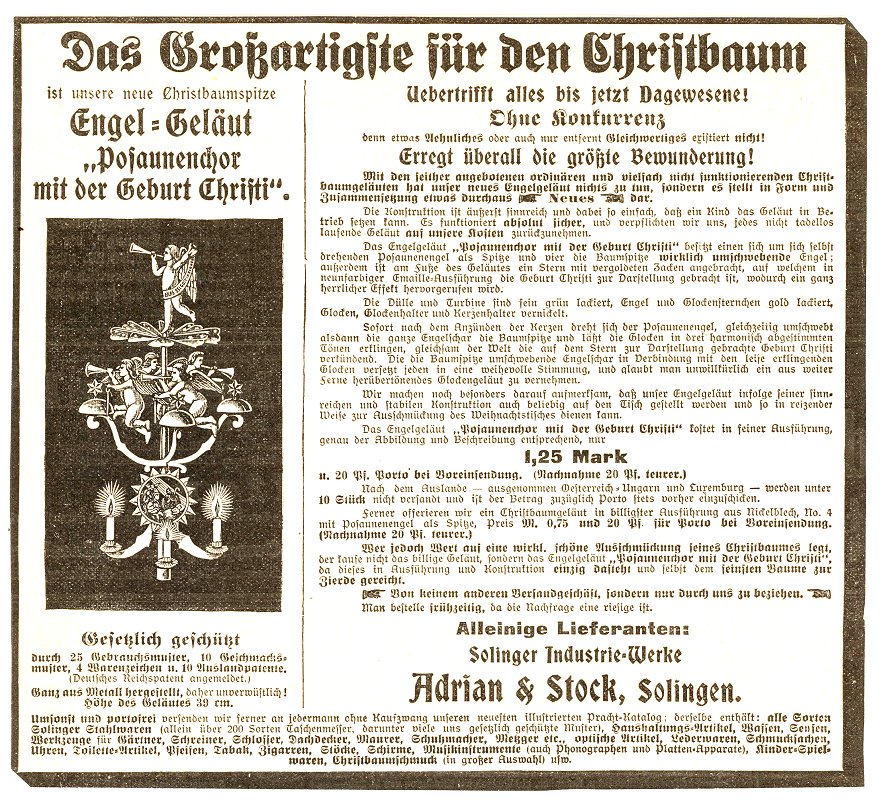 Stock distributed their chimes through a number of different Solingen firms, the Stock name and mark is generally not