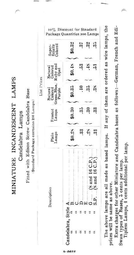 Edison Miniature Lamp catalog of November 8, 1906. Images of all 10