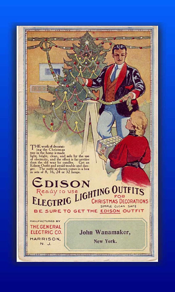| 1901- General Electric advertisement promoting sale or rental of Christmas light bulbs, from the