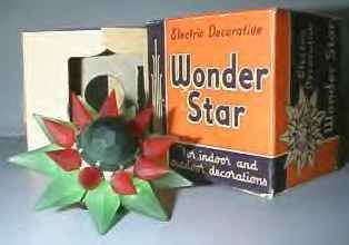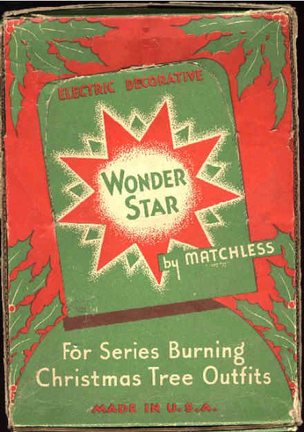 in the very In the years following World War II, The Matchless Electric Company continued to produce Stars with prisms made of Lucite. The Company produced the lamps for NOMA's earliest bubble lights as well, providing 15 volt clear, round lamps. (Later bubble lights used flat topped General Electric lamps). Production of all Stars, both acrylic and glass, ceased in the mid 1950s. The corporation was dissolved in 1954, but the company itself continued in business until 1961. It is unknown what products the company produced during their last years. (Web site visitor Jim Rankin of Milwaukee, WI has written a very detailed article on the repair and re-lamping of burned out Matchless stars. You can view his article HERE.) (Much of the information on this page is from a paper published by Bill and Treva Courter entitled "The Matchless Electric Company and Their Wonder Stars". Additional information kindly supplied by James Dittman and Jim Sloss Welcome Page TABLE OF CONTENTS